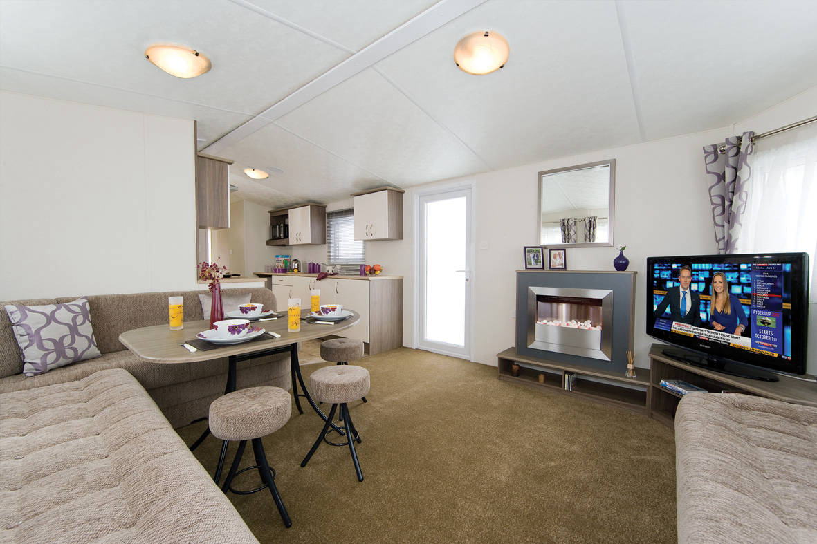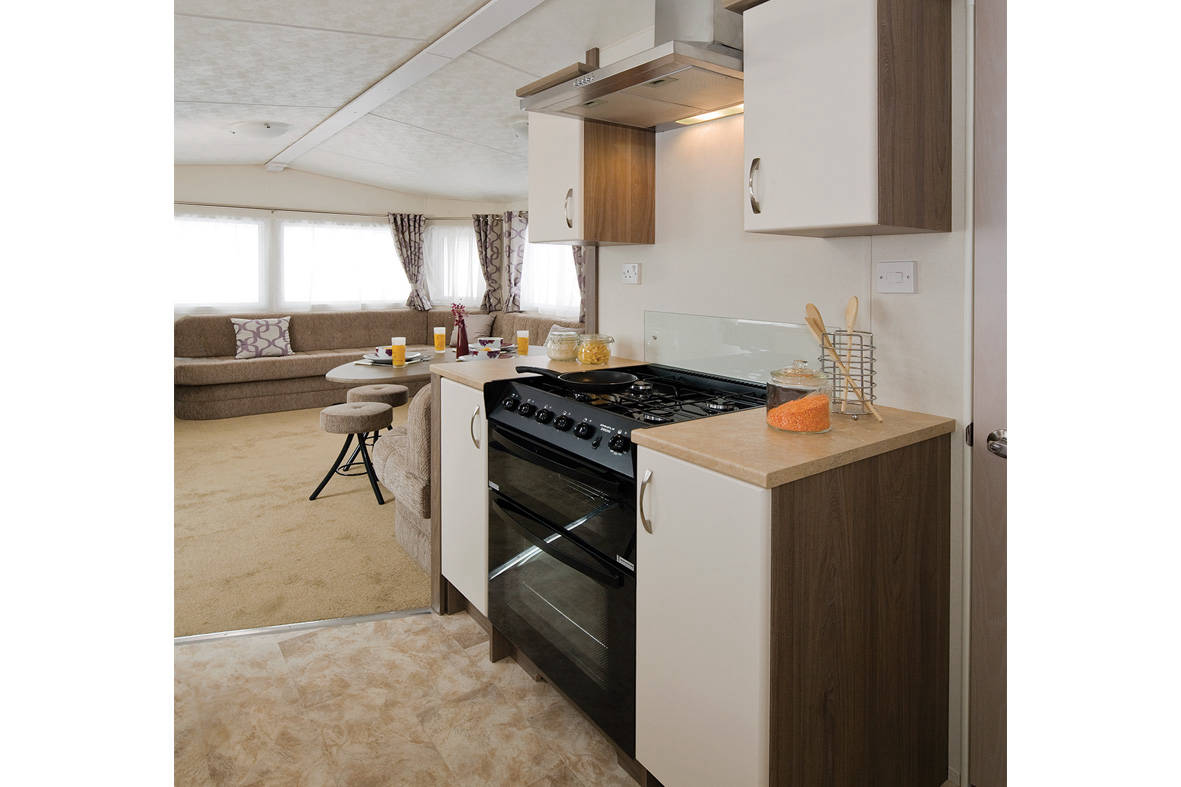 The Bromley Deluxe static caravan is comfortable and spacious, the modern styling and fabrics give this holiday home a welcoming appeal, an ideal family holiday home. The modern fitted kitchen with full oven and grill allow easy transfer to the spacious dinette style eating area. This spacious layout will give you the space needed for that perfect large family break away, so just relax and enjoy the comfort.