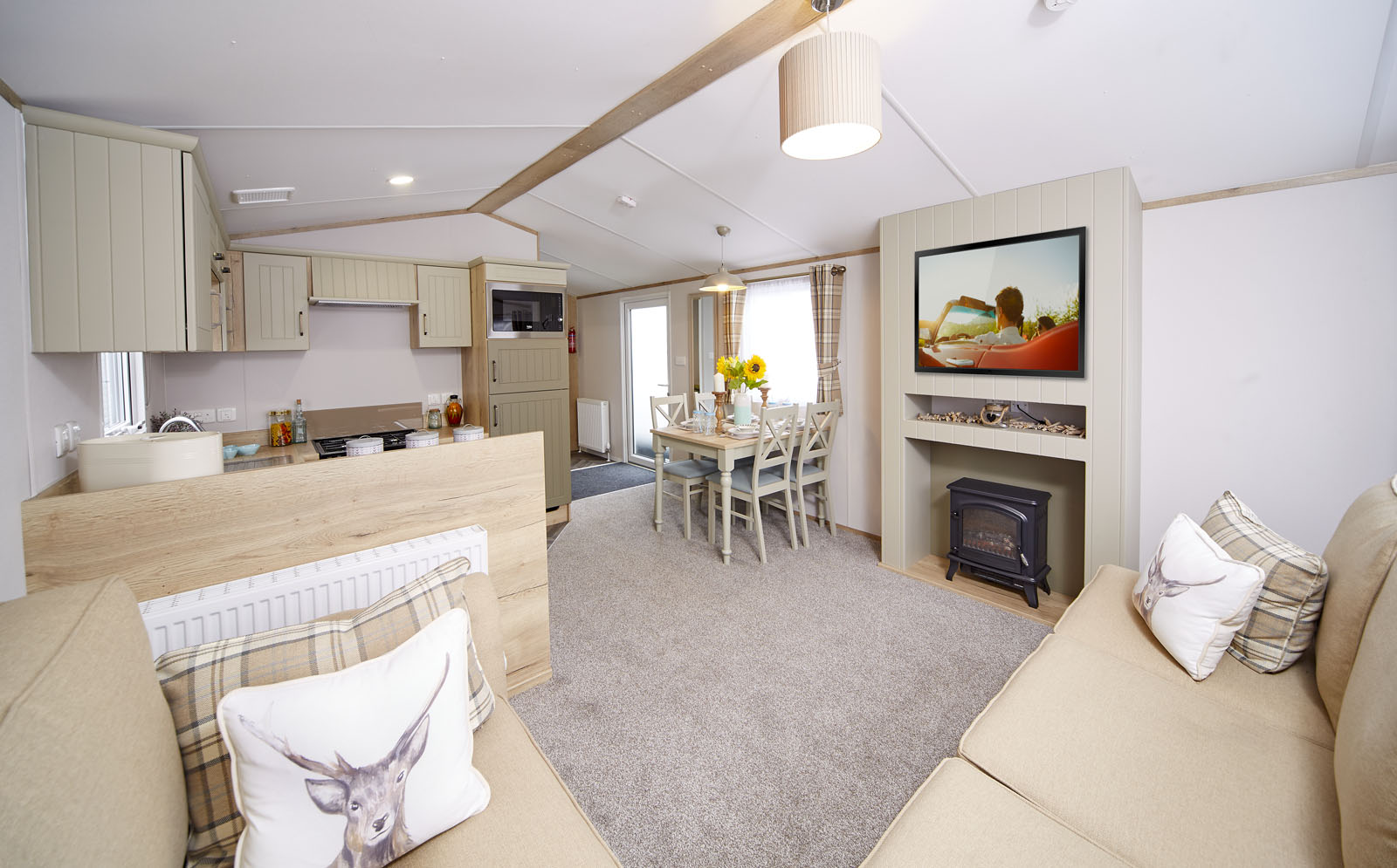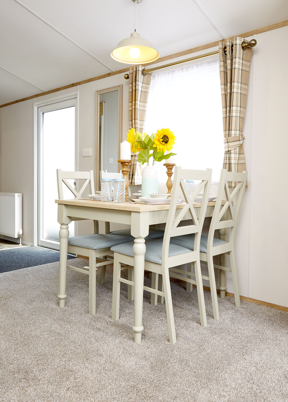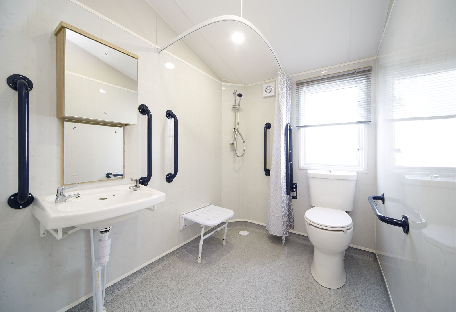 Following through in true Debonair Style, this wheelchair accessible home is complete with all features required to enjoy a relaxing getaway. Offering a large freestanding L-shaped sofa, wet room bathroom with tile effect wet wall, and freestanding dining table and chairs these design elements make this home a comfortable space for wheelchair users and their families.