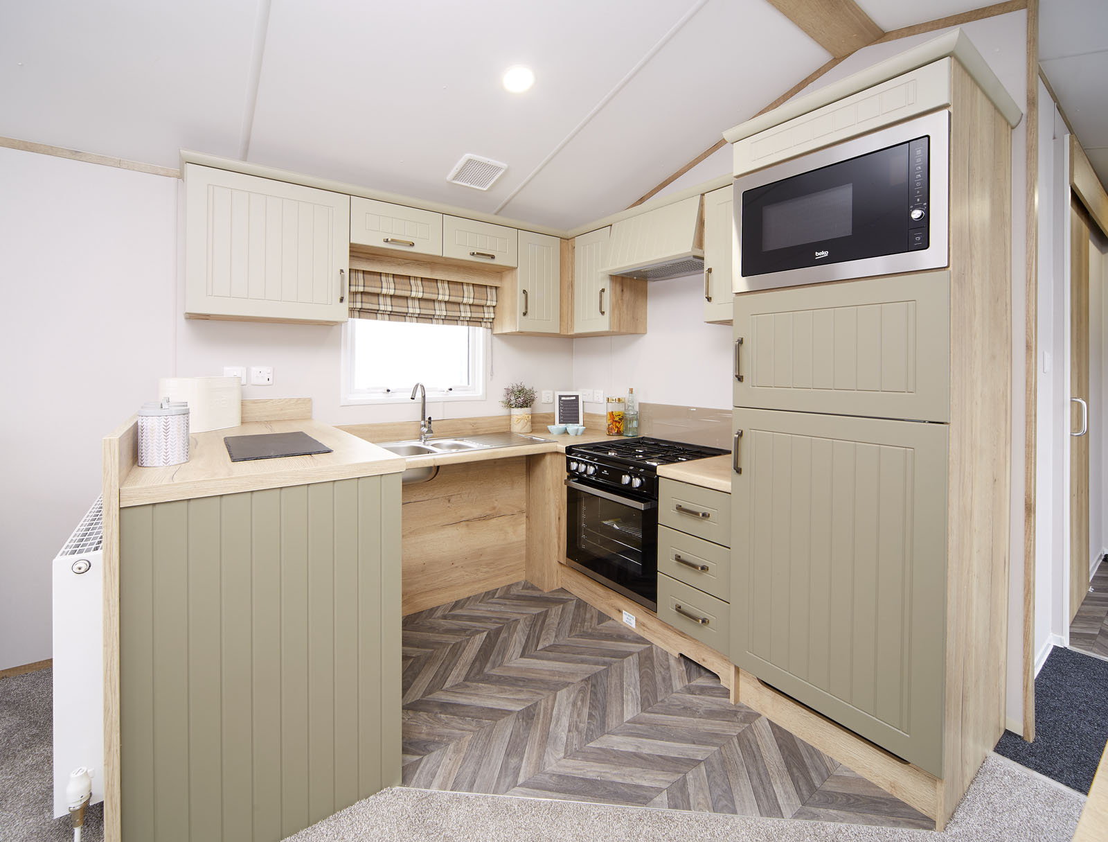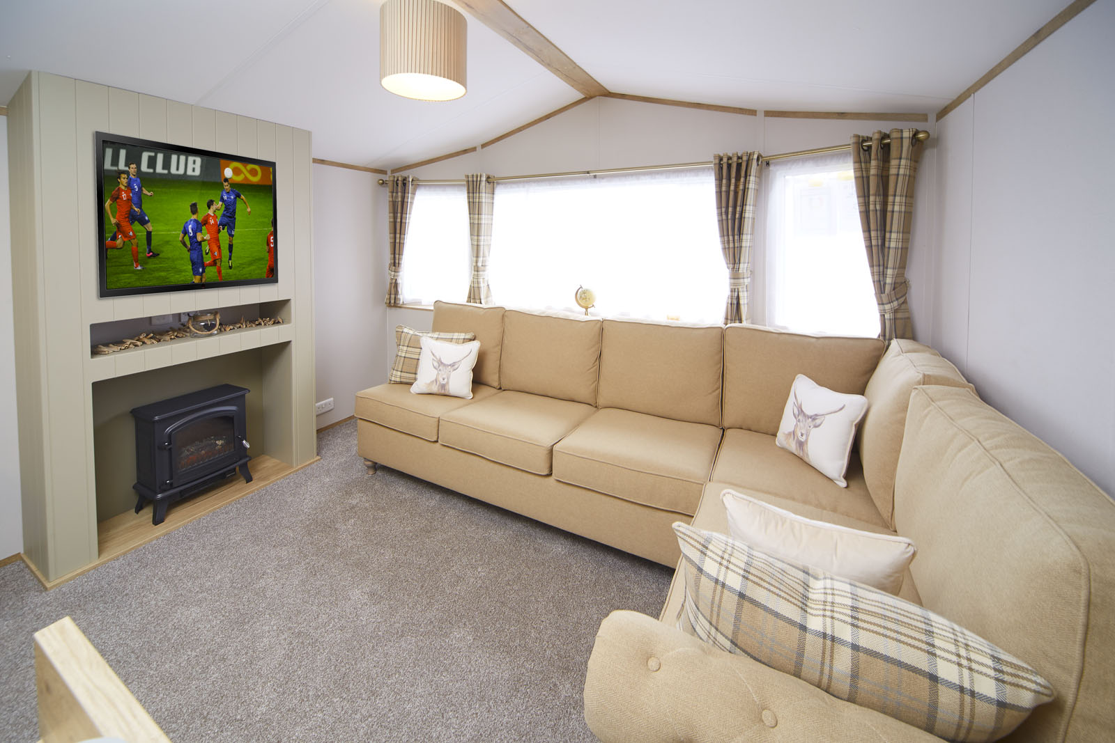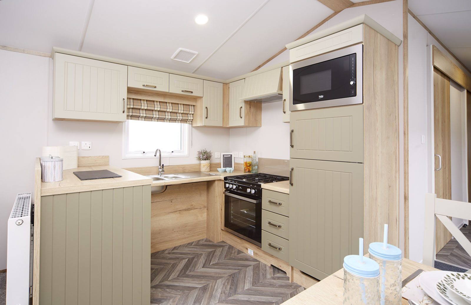 Following through in true Debonair Style, this wheelchair accessible home is complete with all features required to enjoy a relaxing getaway. Offering a large freestanding L-shaped sofa, wet room bathroom with tile effect wet wall, and freestanding dining table and chairs these design elements make this home a comfortable space for wheelchair users and their families.