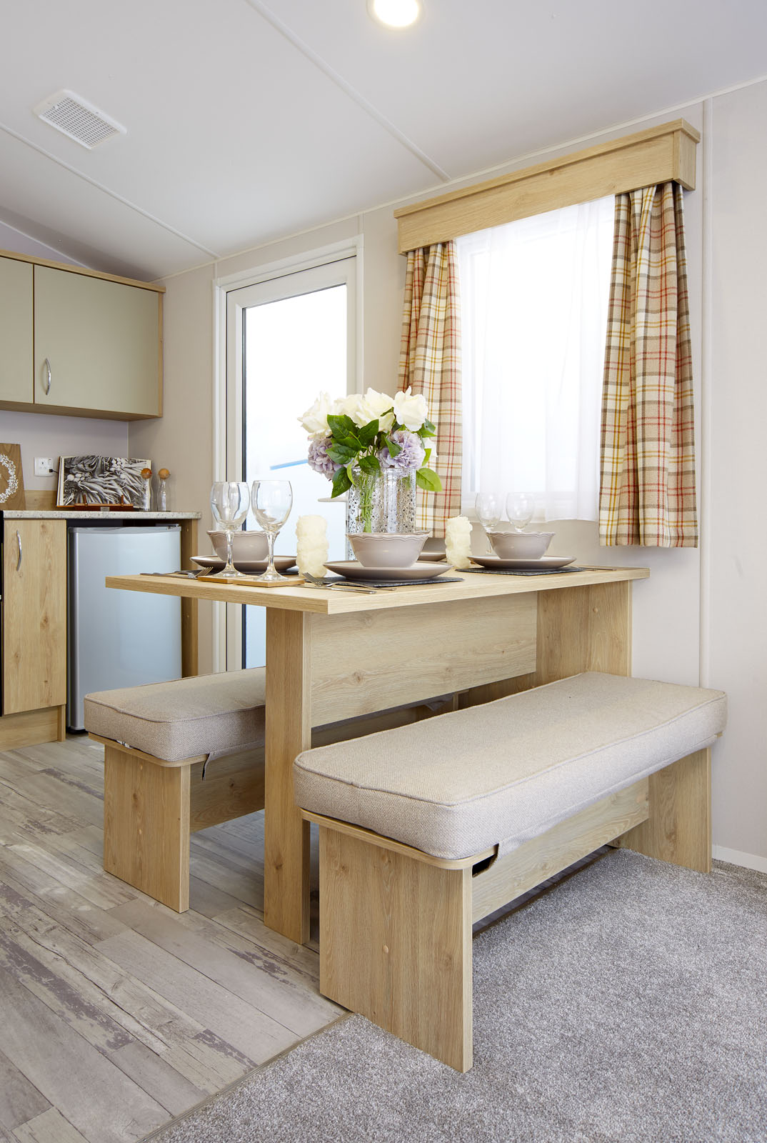 The Atlas Mirage has a spacious feel, with neutral and cosy tones throughout creating a warm and welcoming home – guaranteed to brighten up even the dullest of days. Freestanding bench style dining seating, creates a practical and inviting social space to spend quality time with family and friends.
