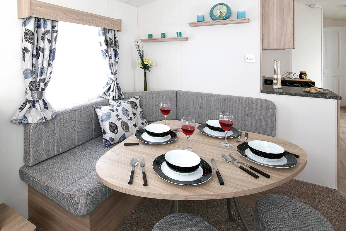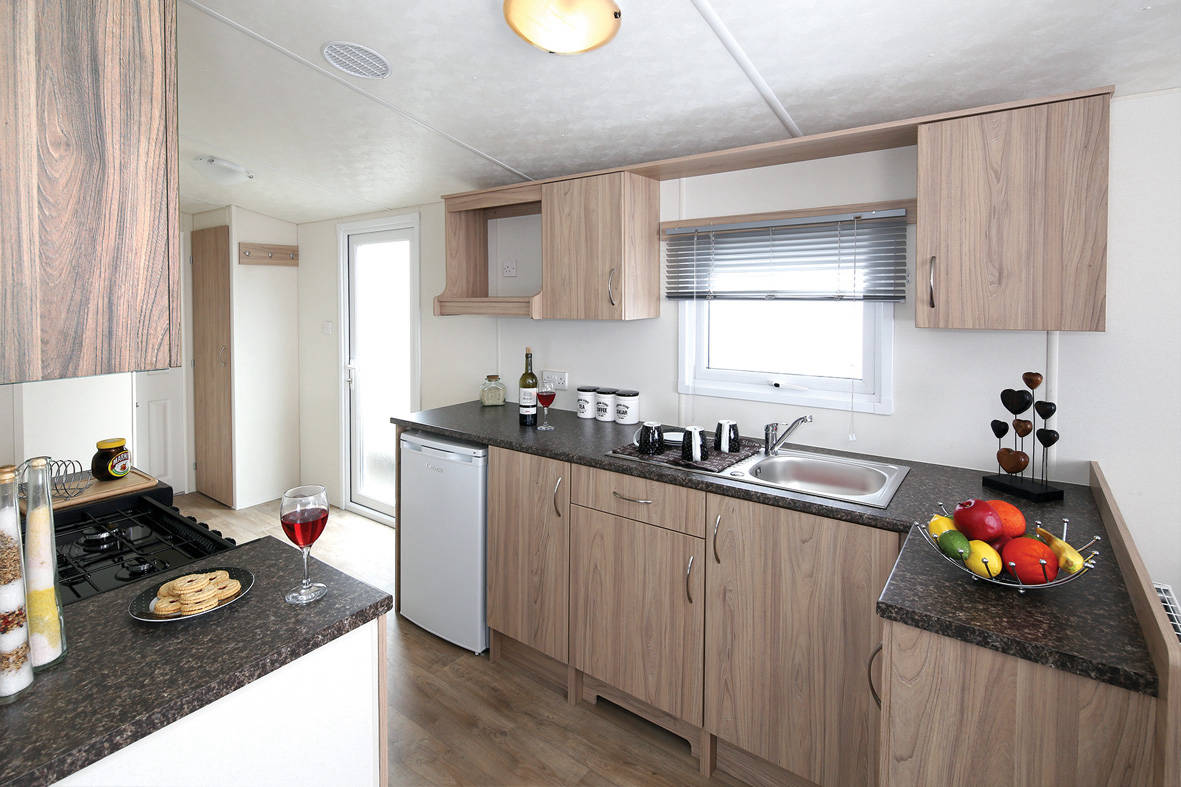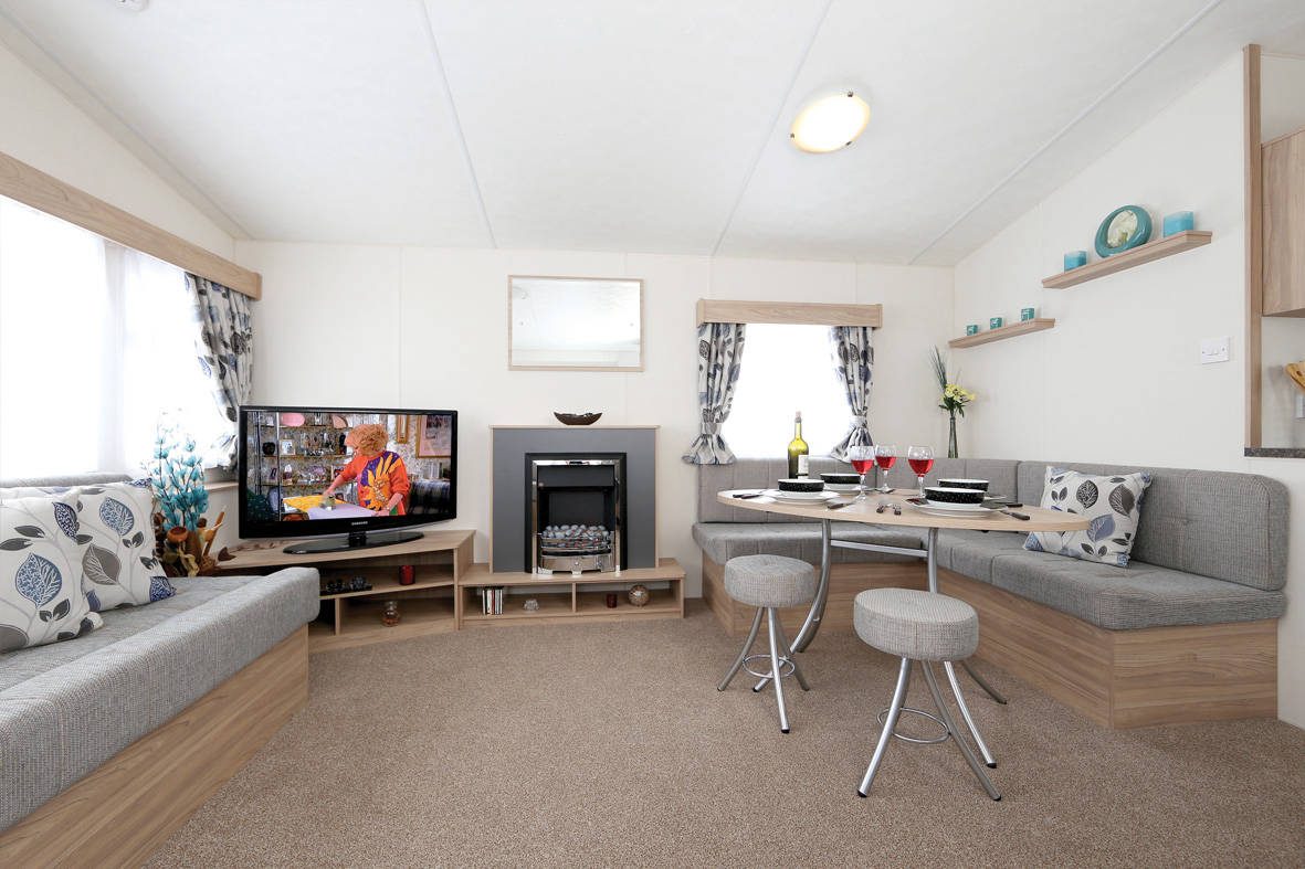The Resort Plus static caravan has a level of practicality with a spacious well thought out design meant to meet the needs of the family holiday or the weekend getaway. The large seating area is more than ample for family and friends to relax. All the seating has under seat storage and includes an occasional bed. The Resort plus features a fixed separate dining area with 2 stools. The Kitchen area is very practical with plenty of worktop space , plenty of storage and a wide walkway. The bedrooms follow the theme with useful storage and a soft colour scheme to give a comfortable relaxing environment. The Resort plus comes with a full winter pack as standard and is a surprise for anyone looking for an affordable starter holiday home at exceptional value.