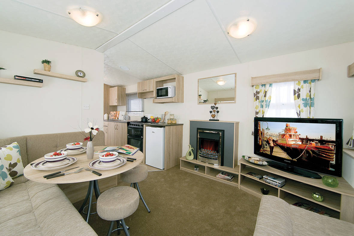 The Santana static caravan has bright modern attractive fabrics with comfort and design producing the perfect family holiday home. This is the ideal model for first time holiday home buyers who are looking for outstanding value for money alongside spacious practical open plan living.