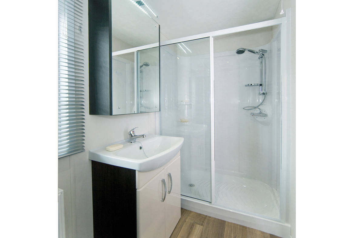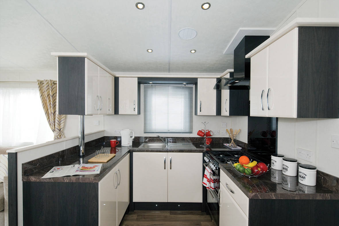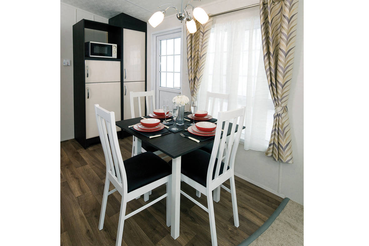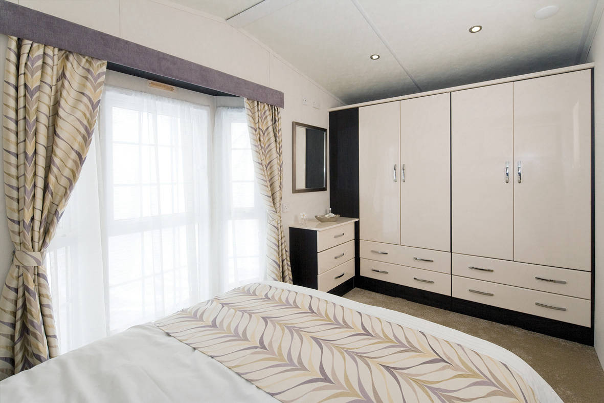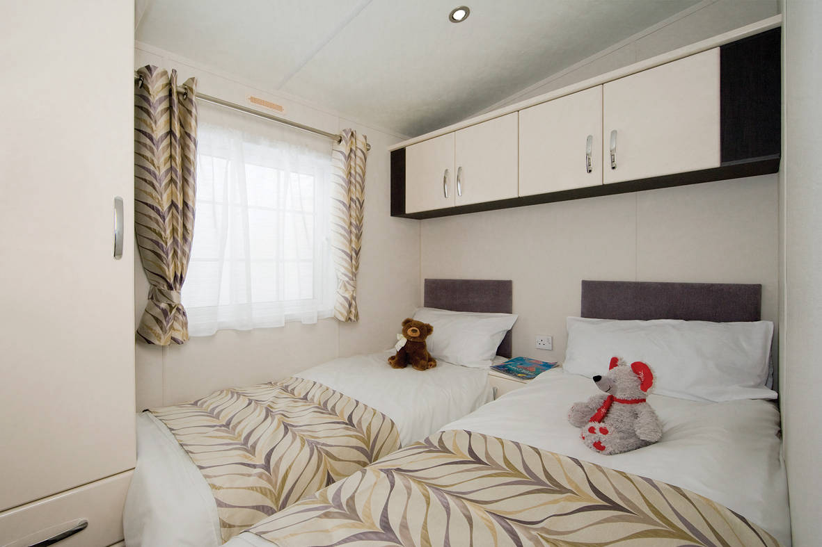 The Thornbury has a modern look, with graphite windows making this home look warm and comforting, making a perfect family holiday. The living room is extremely welcoming and spacious with a modernised colour scheme with comfortable seating with matching scatter cushions and a feature fireplace. The kitchen and dining room are well laid out and fully equipped giving you plenty of storage room, the master bedroom has two double wardrobes and two draws in each, it also has a vanity table and mirror with two bedside tables and overhead storage, along with having calming and relaxing colours giving you the perfect night’s sleep. The new model has a spacious family bathroom with storage facilities big enough for everyone