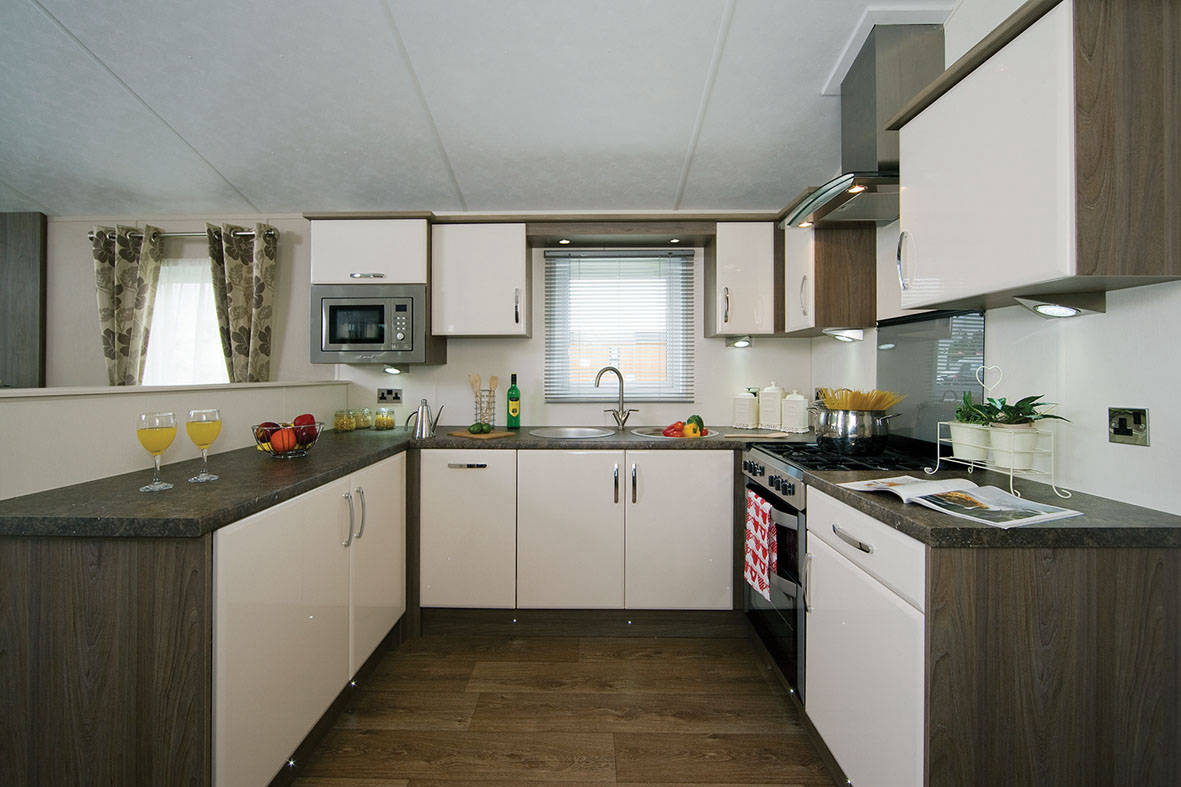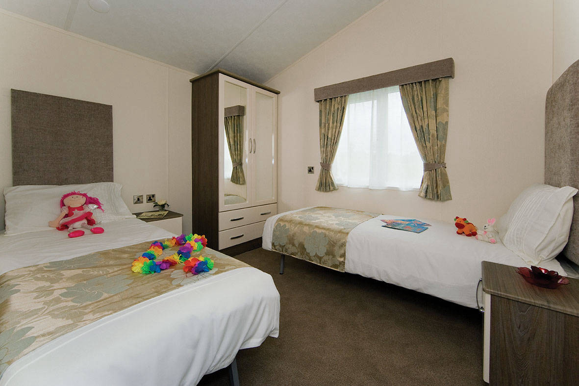 The Superior Lodge features a sliding patio door to the front giving you direct access to your own deck. The living room is wonderfully inviting, with comfortable seating incorporating a fold out occasional bed and coordinated scatter cushions. The bedrooms, include plush headboards and co-ordinated curtains. The modern stylish kitchen has high gloss doors with under unit lighting and many integrated appliances. The Superior Lodge has a light and spacious bathroom with a shower above the bath plus a second shower room featuring a large shower enclosure; both include mirrored cabinets and dual flush toilets. If you are after a Twin unit that has everything the Superior Lodge is the home to view.nd well planned, the large patio doors allowing you access to your outside space easily. Fresh colours have been used to give the unit a light and airy feel to uplift your mood. Well planned and thought through, this unit is a real gem, ideal to start your Lodge experience.